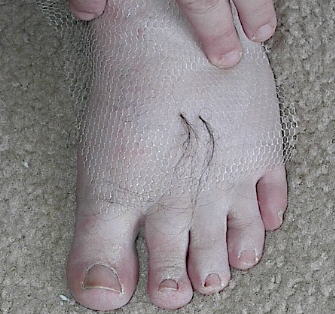 will probably come on a roll. Wash and dry your feet well, and put on 2