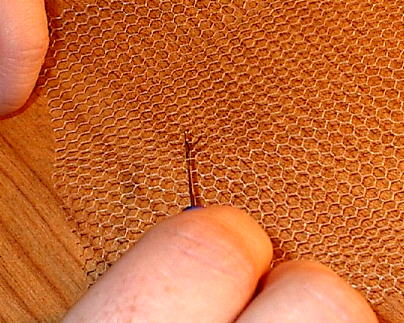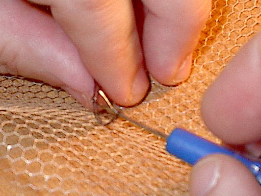 Poke the hook under a line of the netting (notice it's all hexagonal